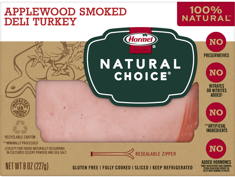 - HORMEL® NATURAL CHOICE® Sliced Applewood Smoked Deli Turkey Lunch Meat comes in a convenient resealable package